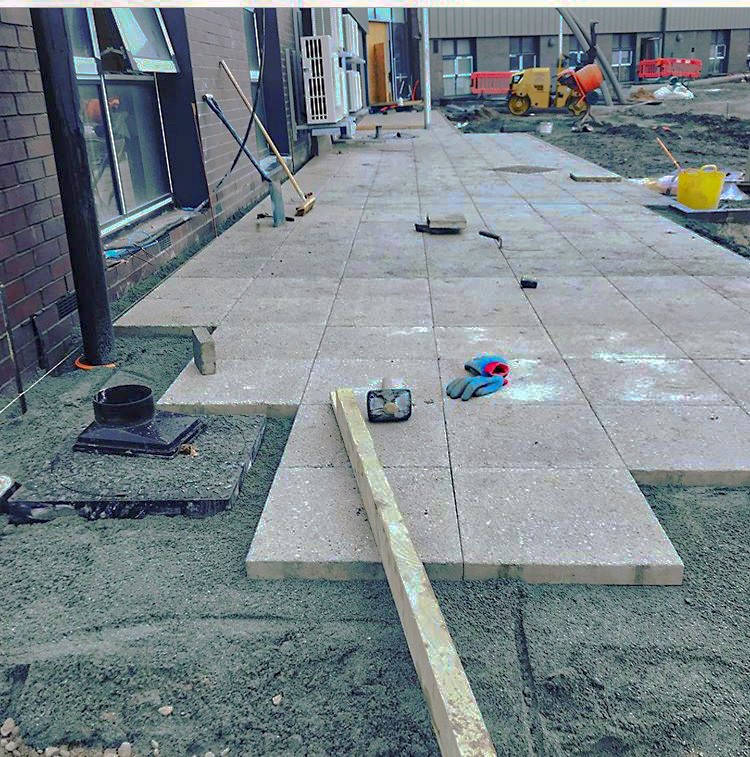 Cumbria county council paving works-1120sqm of screed bedded 450 x 450 buff pavers